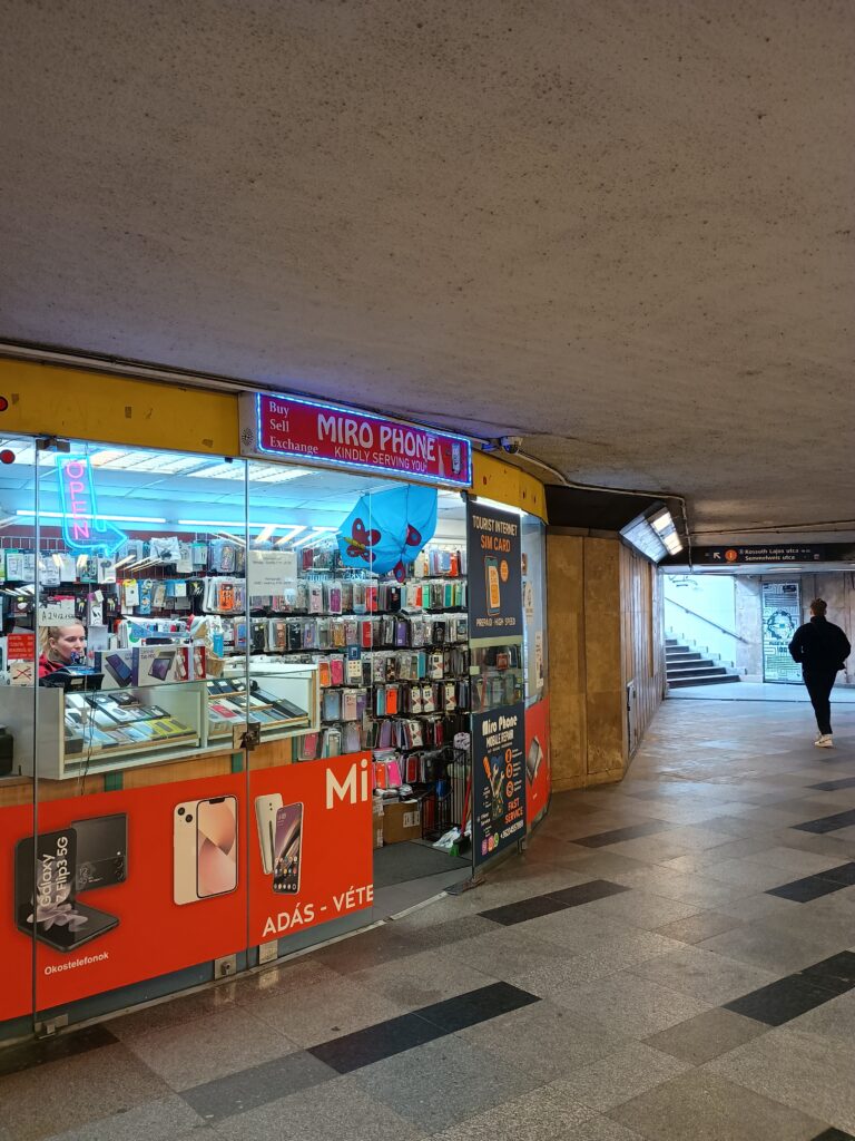 ただ現地で就業許可書を発行されてない状態だと、この通信SIMの契約ができない。旅行者用のSIM契約をする手があるが、割高です。20GB容量+1か月有効なSIMを地下鉄の売店で購入したが、15000FT(7500円)くらいした。下記の写真のような売店で I am looking for a Sim Card for Tourists とか伝えて購入しました。 ↓BudapestのAstroia駅の改札前